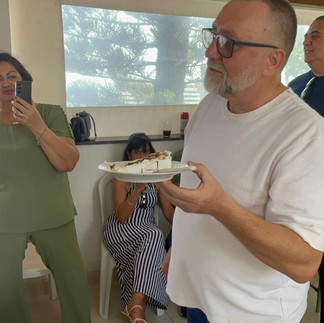 No local, os fiéis cantaram os parabéns e repartiram um bolo preparado com muito carinho para o sacerdote.
