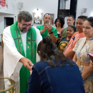 Ao abençoar as Bíblias dos catequizandos e catecúmenos presentes, padre Casimiro reforçou, ainda, a importância de fazer da Palavra de Deus uma companheira diária.