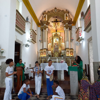 Além da celebração litúrgica, os fiéis viveram um momento especial com a apresentação de uma Roda de Capoeira, protagonizada por pré-adolescentes da própria comunidade. O som do berimbau, os movimentos cheios de história e a alegria dos jovens reforçaram a herança afro-brasileira que pulsa nas expressões culturais e na identidade do nosso povo.